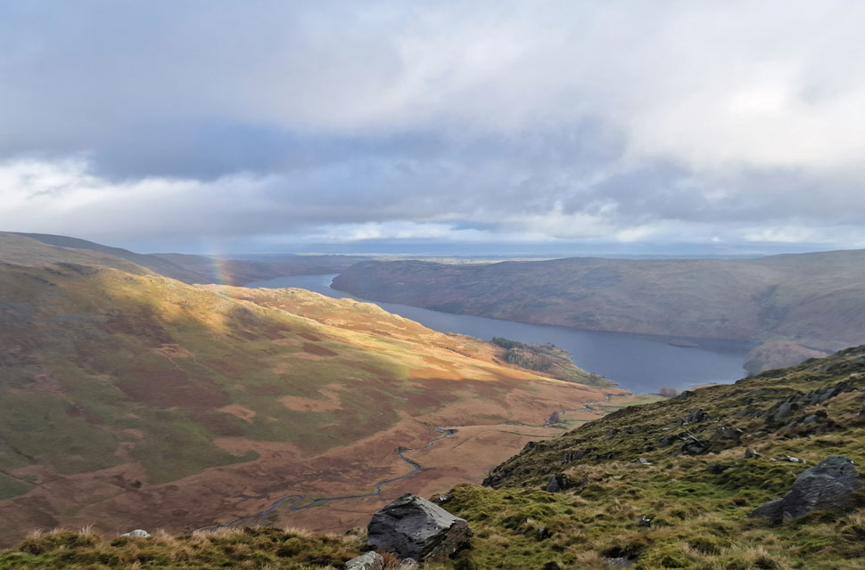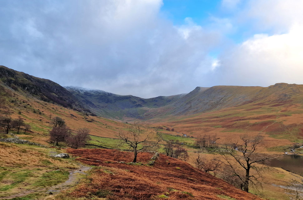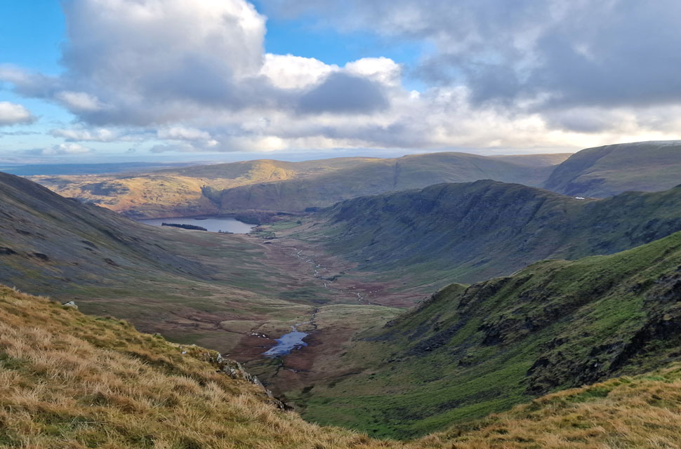 Stunning views into Riggindale with High Street seen left and Kidsty Pike seen right. |