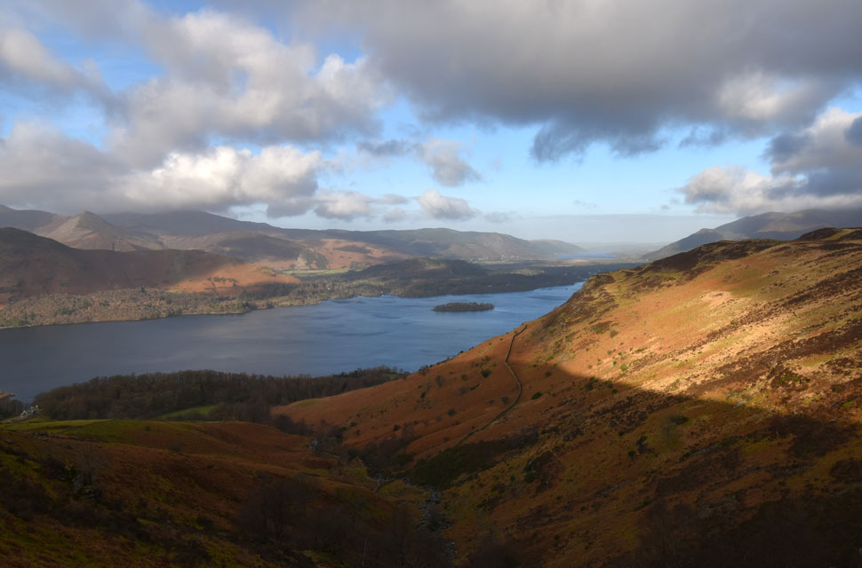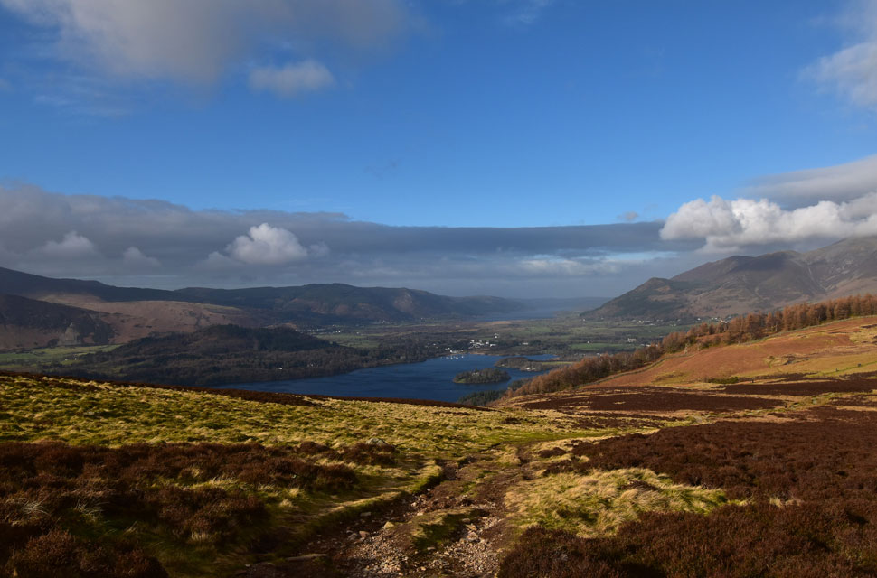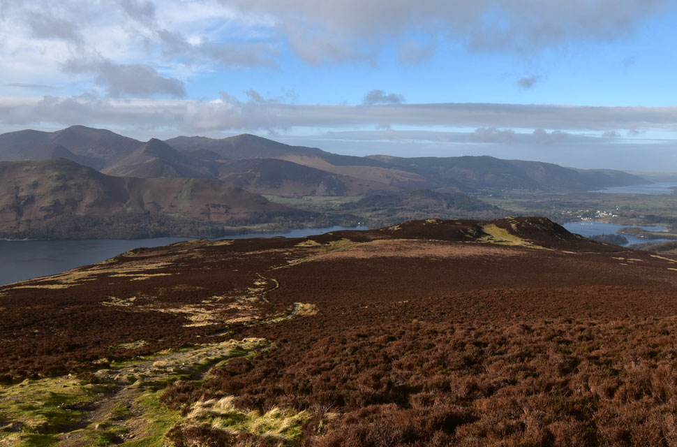 Derwent Water and Bassenthwaite Lake from the top of Cat Gill. |