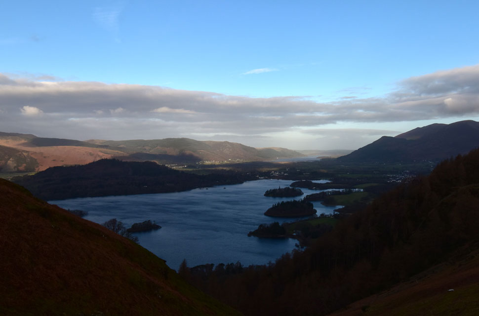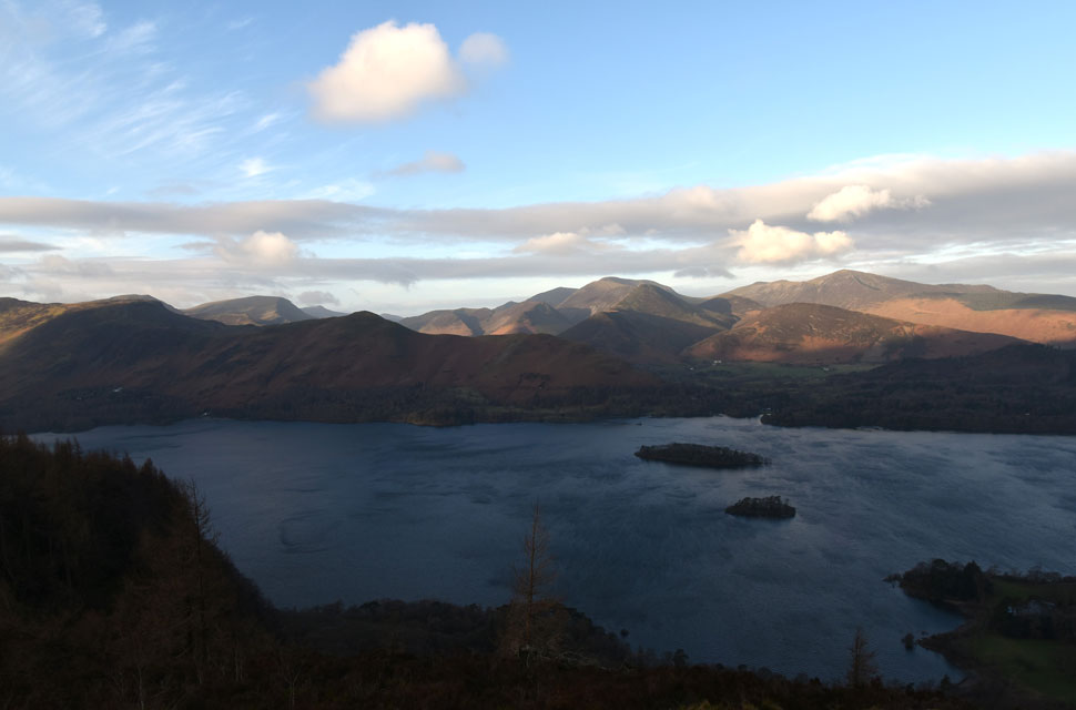 Derwent Water, Cat Bells and the Grasmoor fells beyond from Walla Crag summit. |