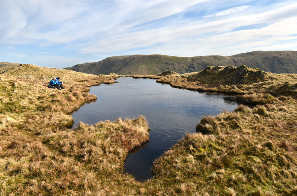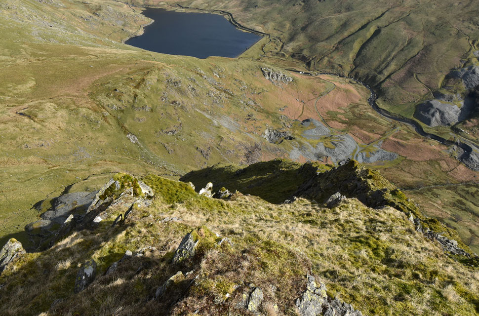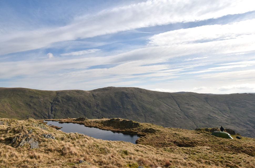 The tarn isn't clearly visible from the top of the Edge so you might imagine my surprise when I arrived at one of Lakelands most secluded tarns to find two walkers having a bite to eat and (out of view) a wild-campers tent. The two guys gave me a wave followed by "have you just come up from there" while the other checked his map "how was it" Bloody steep I laughed.
