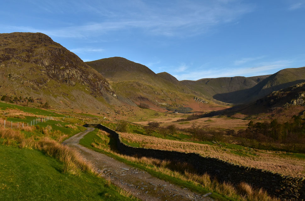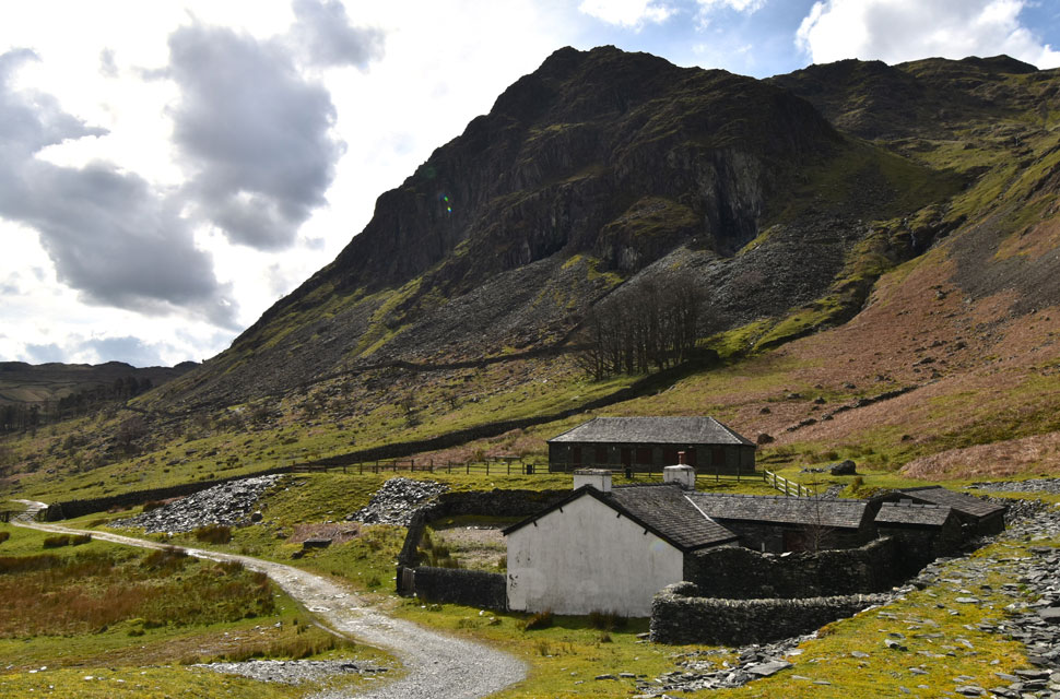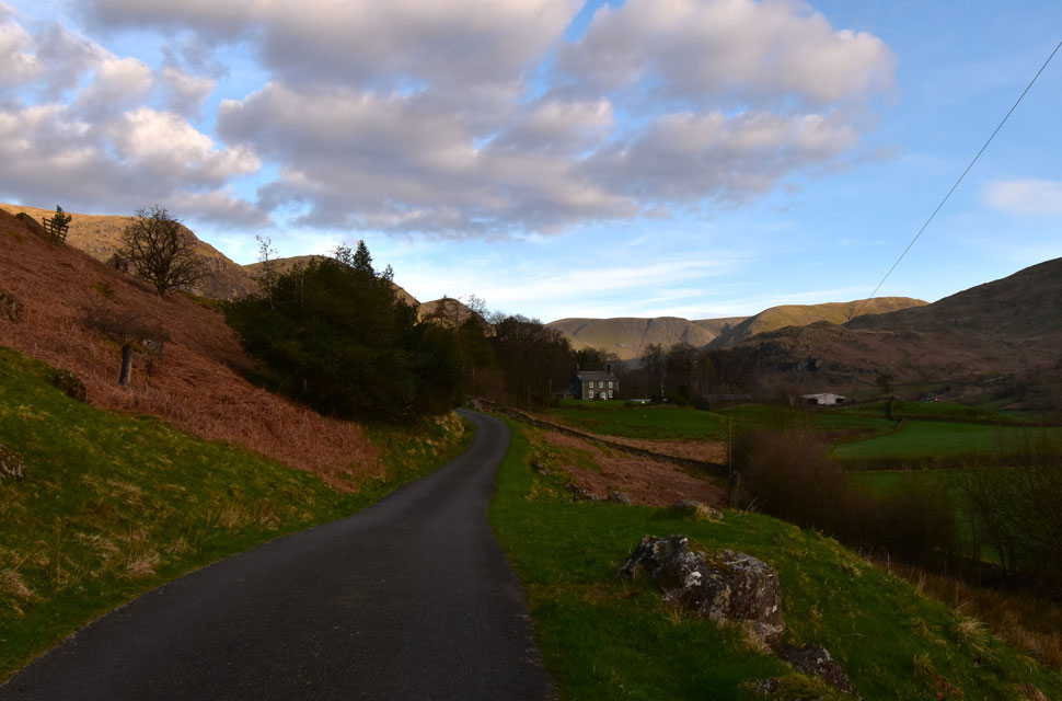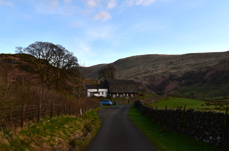 Despite the aching feet I made sure I relished the walk back into Kentmere where I was passed by a farmer towing a trailer full of bleating lambs which he later released into a nearby field close to Scales. With the Spring sunshine beaming down I took one last look across the valley accompanied by Ravens whose squawks drowned out the sound of the lambs and their new found freedom. With the large metal gate reached I could hear kids playing in the nearby farm yard while below close to Kentmere Hall, more lambs joined the Spring chorus.