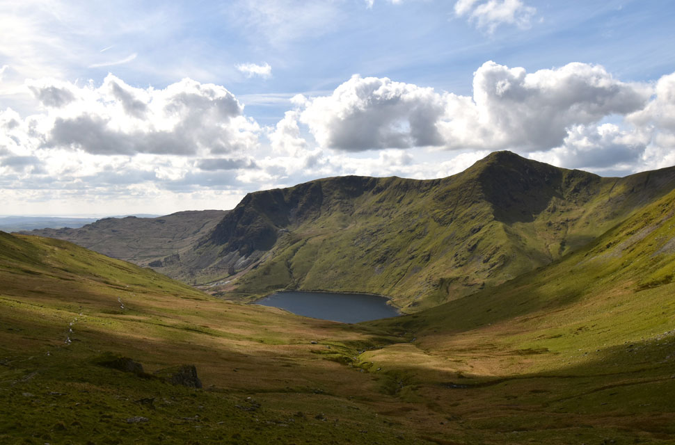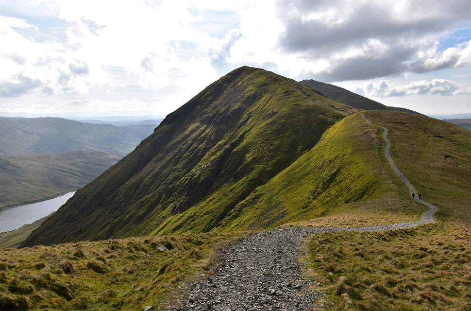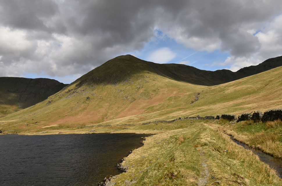 With the top of Nan Bield Pass behind me I seemed to find the spring in my step again and descended the steep zigzags with ease finding comfort as the path eased before the final steep descent of the day towards the shores of Kentmere Reservoir. |