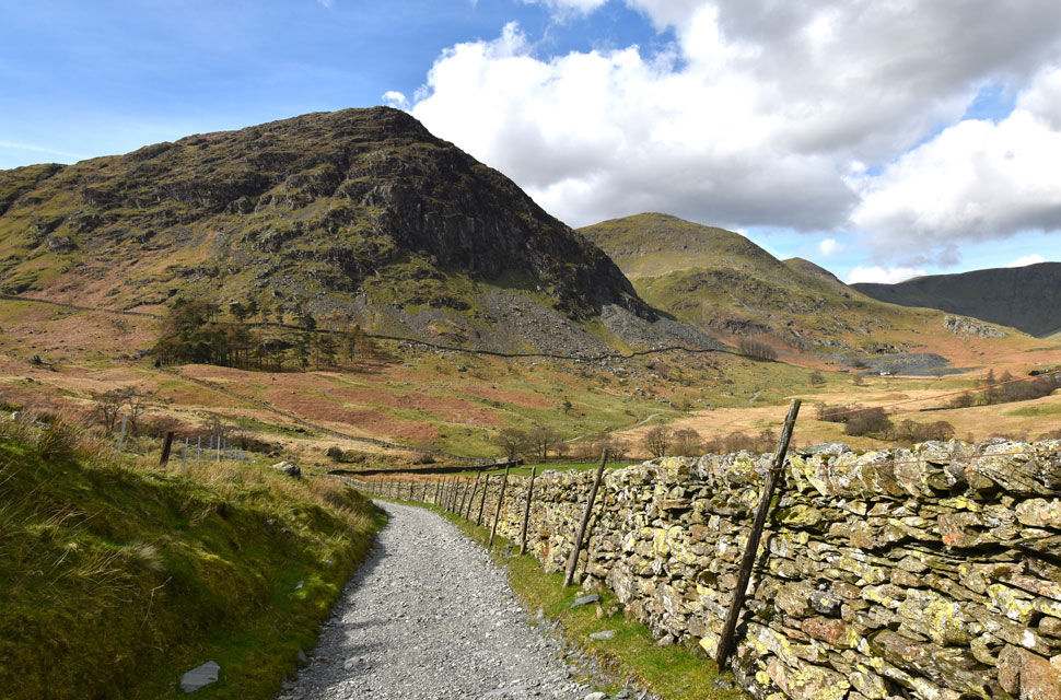 Despite the arrival of high cloud the sun was still beaming down so off came my jacket and base layer for the walk back to Kentmere in just a technical T-shirt. |