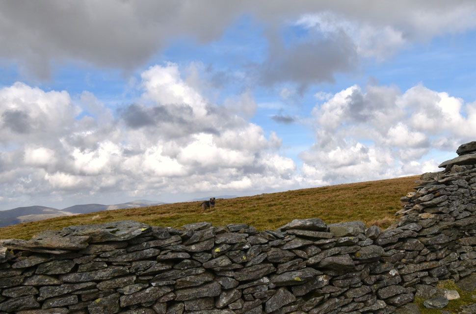 This little chap's owner was about forty yards behind but being the little explorer that he was headed towards the summit on his own while I kept my eye on him from the other side of the wall. On my way back we crossed paths and I shared a laugh with his owner who'd set off from Hartsop earlier. |