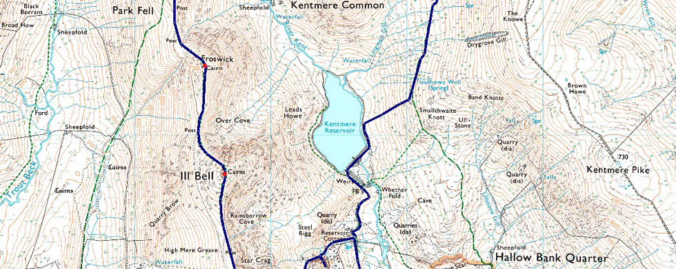 Passing Rainsborrow Crag with Cauldron Quarry seen left and Lambfold Quarry right. |