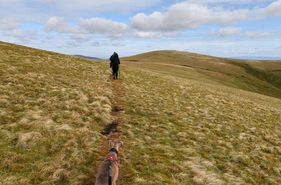 We dropped onto a swollen Nick Head before joining the footpath for a descent towards Seldom Seen. |