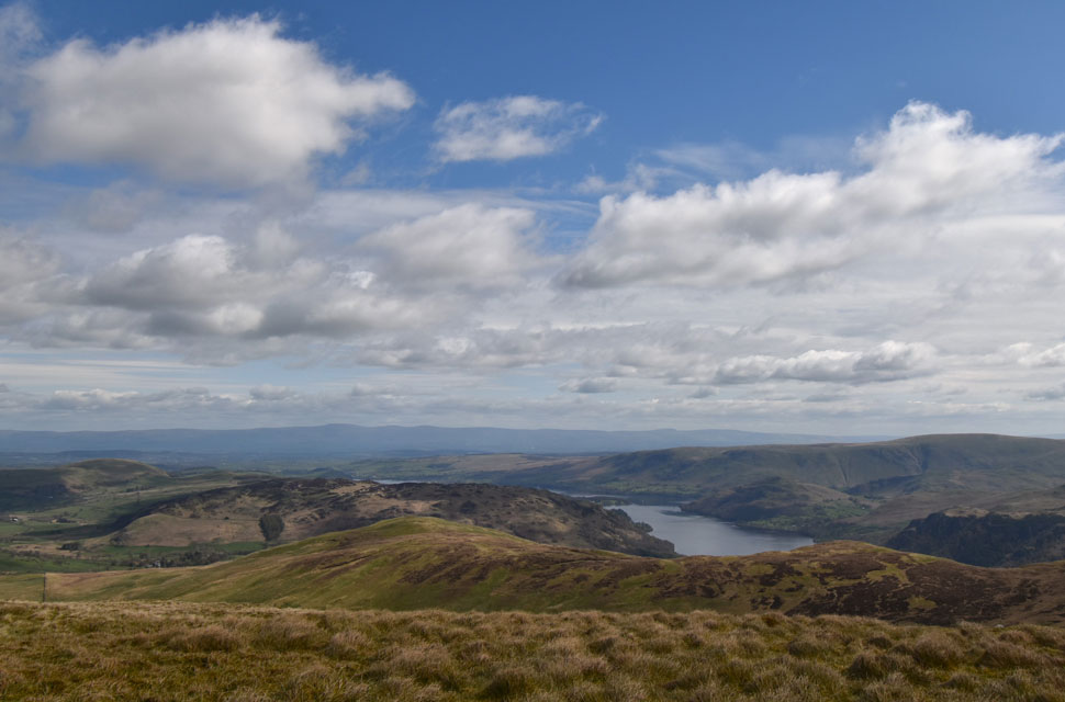 Gowbarrow Fell, Birk Fell and Low Birk Fell (Place Fell) from Glenridding summit. |