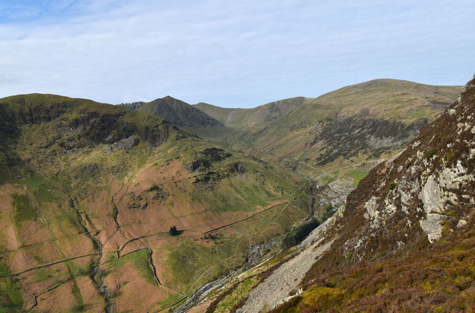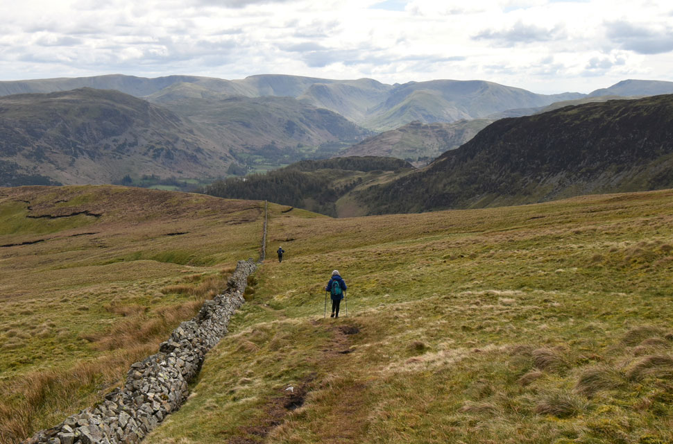 With excellent views into Threshthwaite Mouth. By the way the couple ahead are actually together, we hoped that they had an agreement 'first back to the car or meet you at the bottom' because the husband left his wife until she was completely out of view so we made a point of looking back to make sure she was ok. God forbid she'd have gone over on her ankle! |