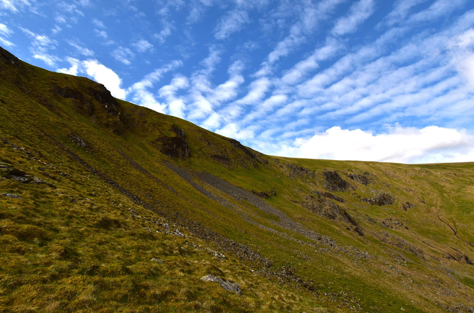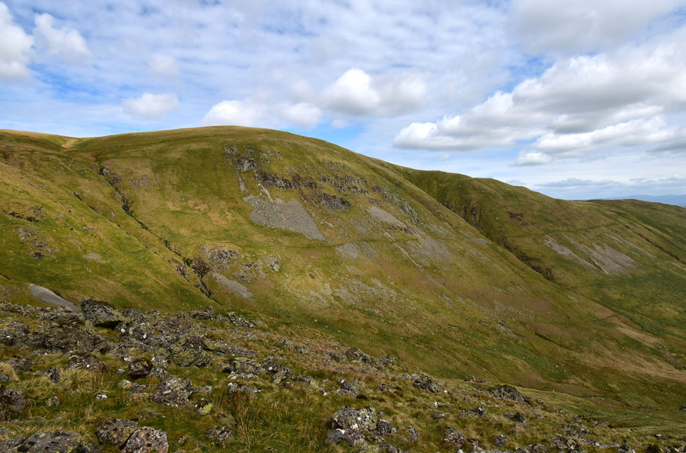 Looking back along the traverse towards Scot Crag and Hart Side. |