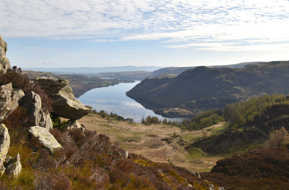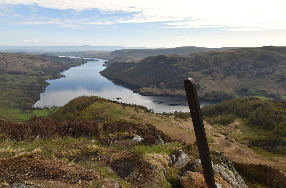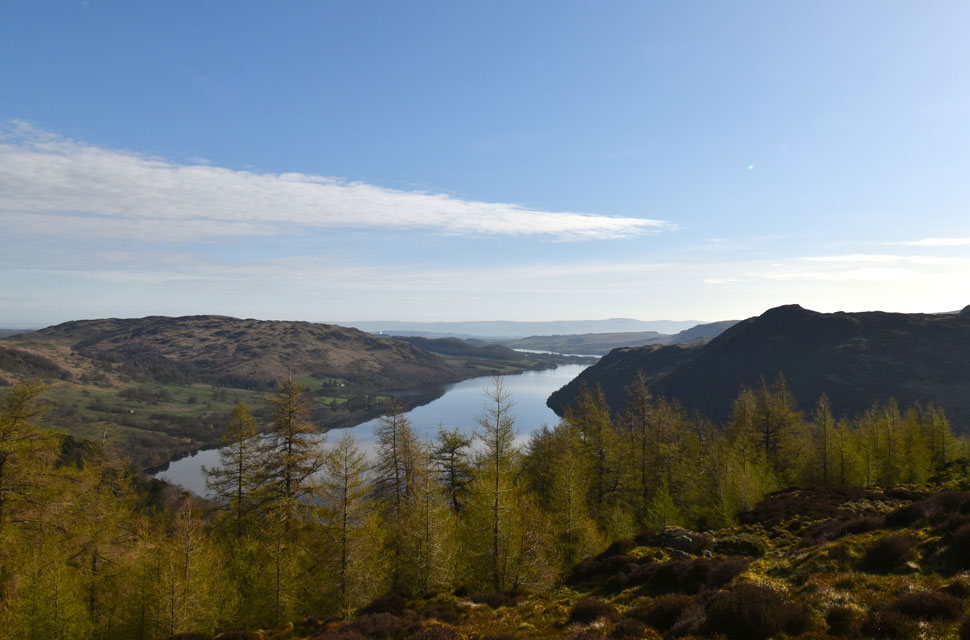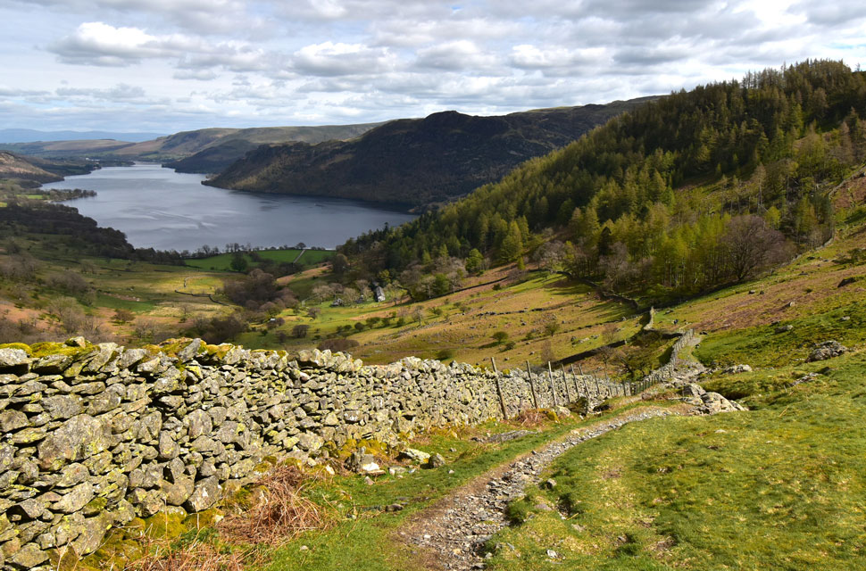 We began the narrow descent while relishing the sunshine sleeves rolled up, even managing to catch a suntan in the process. The path, rough at times, eventually levels in the woodland below, where the afternoon sunshine pierced the treeline, scorching foreheads and forearms leaving the afternoon feeling like spring had finally arrived. Seldom Seen came, the old miners cottages now holiday lets, which do not appear to have changed much over the last century are left behind for gravel and tarmac underfoot. We continued our descent as Ullswater sparkled beyond...