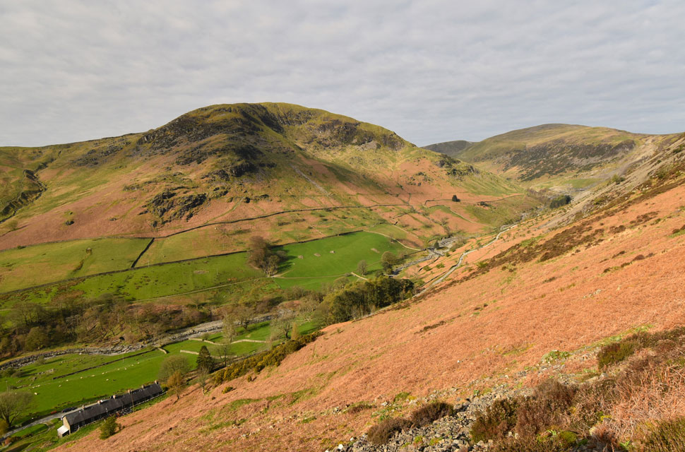 Views over Glenridding towards Birkhouse Moor, Stang, Raise and White Side. |