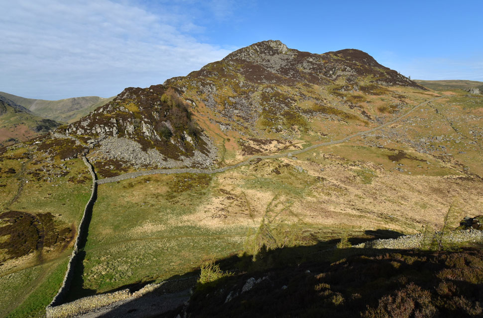 It's just a case or re-tracing our steps to the col below before we begin our ascent on Heron Pike and Sheffield Pike thereafter. Every time we're here David mentions the alternative ascent onto Heron Pike by following the wall horizontally and ascending the fell side from the north, and, as ever we repeat 'must do sometime' |
