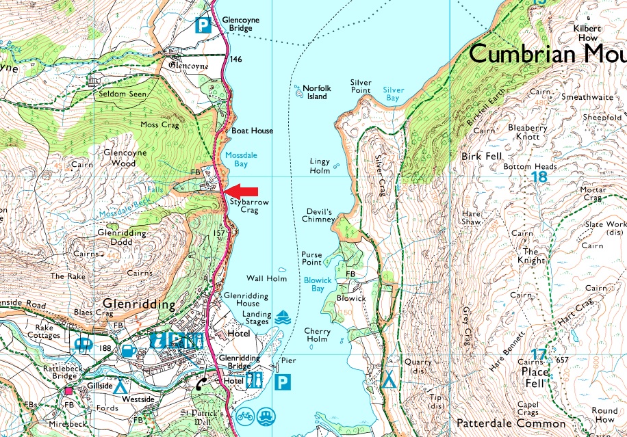 The parking spaces at Stybarrow Crag are perfectly positioned for walks into and Glenridding, the Helvellyn range or even just a short walk up Glenridding Dodd. If travelling from the north the parking spaces will appear on the right as a long layby right opposite Ullswater or from the south they will appear on left after leaving Glenridding. Despite the popularity of the surrounding fells and villages you would only have trouble parking here if left late into the day during Summer. Parking is free. |
