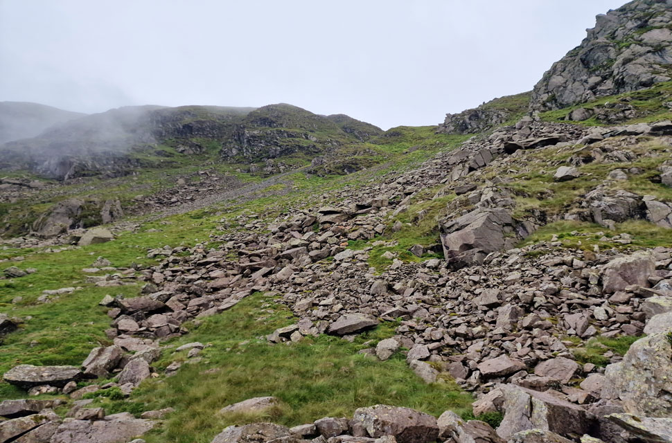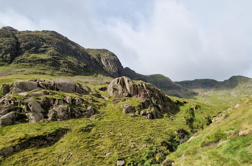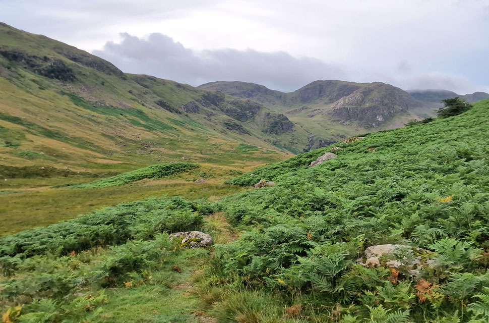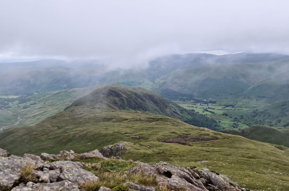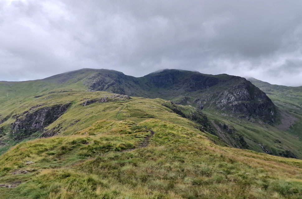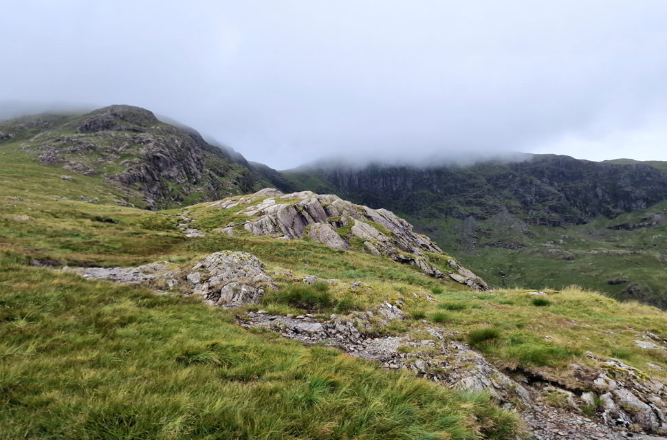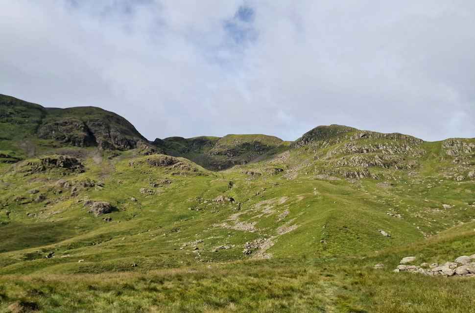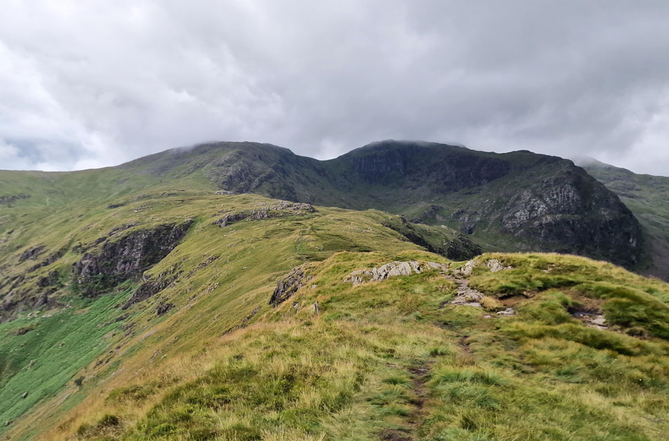 Greenhow End, Hutaple Crag, Black Tippet and Cofa Pike come into view. |