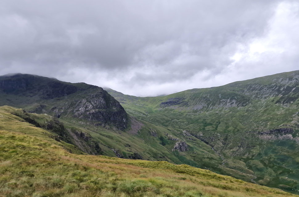 Looking back through Deepdale with Gale Crag and the Hartsop above How ridge over on the right. |