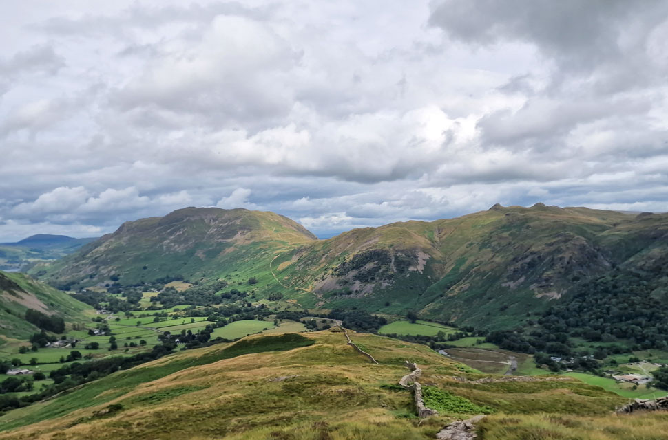 Hartsop above How soon came from where we took in the views into Dovedale below, remembering last year when we summited Dove Crag before going onto explore Stand Crags with Rod and his daughter Louise. Continuing down the ridge we are passed by dozens of walkers all heading towards Hartsop above How and beyond. The sun eventually came out, bringing with it instant heat, causing David to de-layer to his t-shirt, 'I'll put up with the heat," as we we're close to the cars but in reality, we still have half an hour of walking to do yet. The heat increases, and I'm sure I'm getting funny looks from the folk we pass who'd set off in shorts and t-shirts. We spot the new build over the Deepdale valley and dream some more, agreeing on its near-perfect location. I start to complain that I'm overheating again. David laughs it off.