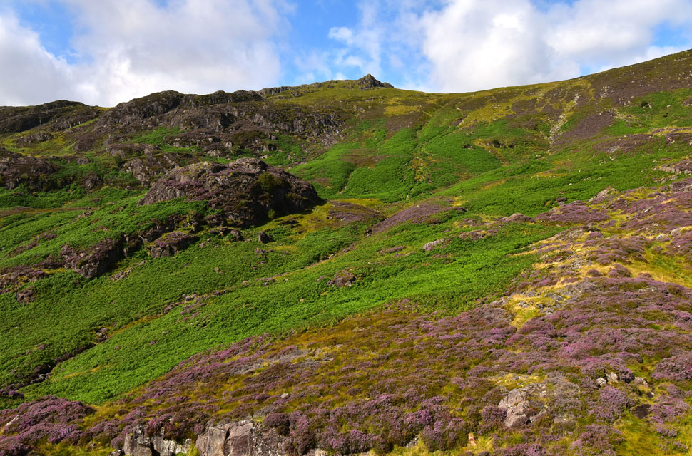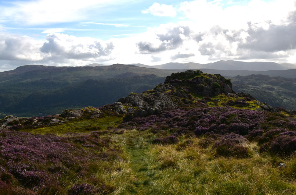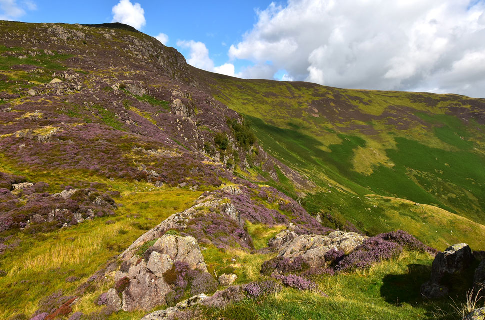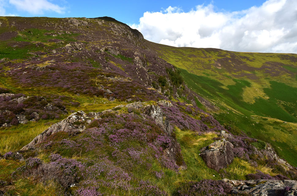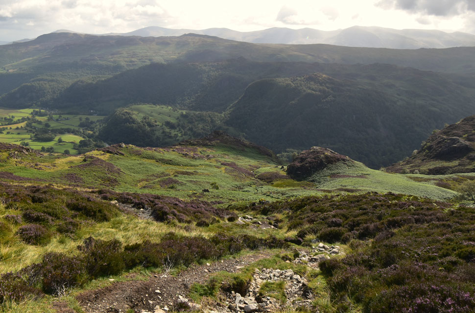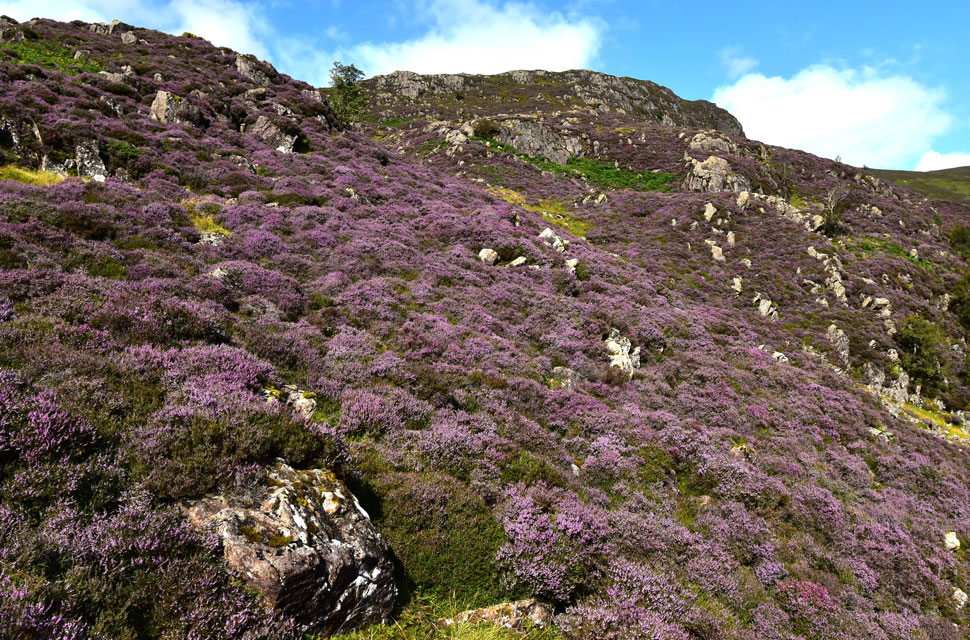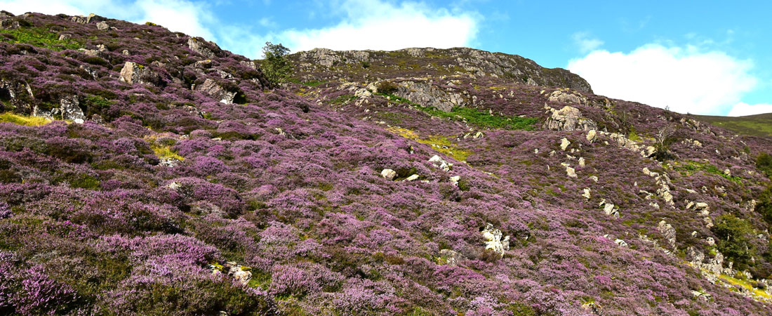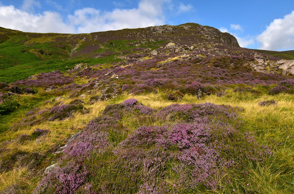 From Nitting Haws I returned to the path before passing this huge swath of heather below Blea Crag as I joined the old drove path towards Cockley How. |