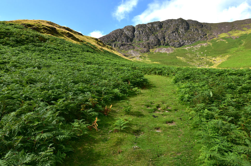 I'd followed a couple driving a Nissan X-Trail from Portinscale, and as I kitted up the woman looked over and dissapointingly said, "It's sad that it's got to this now." I knew instantly what she was referring to, having to time our arrivals much earlier due to the popularity of the Lakeland fells which seems to be growing year on year. As it turns out, the couple were from Holmefirth which is on the doorstep of the Peak District, and I had to reply, "You've left a beautiful part of the country already" I replied, "Yes, but we do prefer the Lakes." I'd left home at 5am and this couple had left at 4am, During the course of this walk, I would meet people who'd left earlier. With my car locked, I left the car park and began the steady ascent through wet bracken, which spread a nice damp patch across the front and sides of my shorts, nice! |