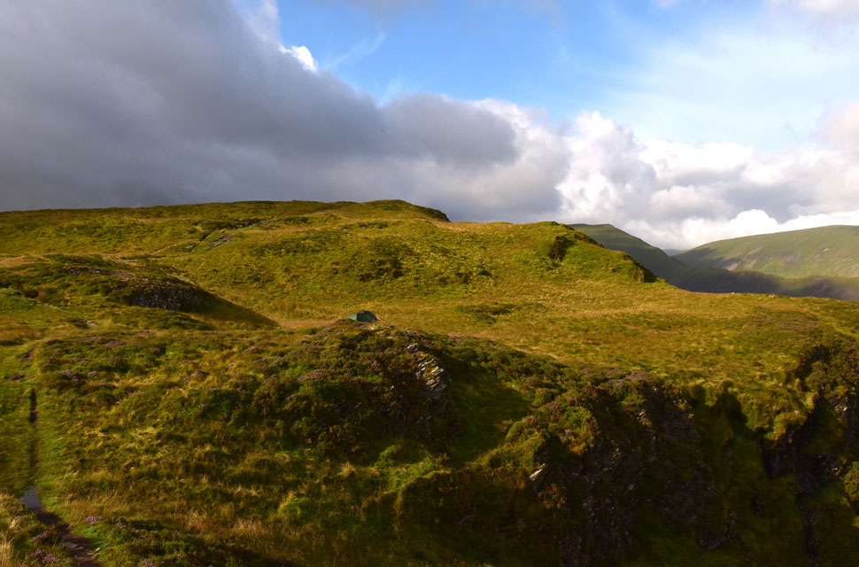 By now I'd began to regulate my pace and breathing and aside my snurching nose I was actually starting to feel like myself again. With height came a drop in temperature and I was glad I was wearing the new long-sleeved Alpkit base-layer I treated myself too. The wild-campers came as a surprise one of whom had a kettle on the boil and I couldn't but help envy what a great location this was, albeit a tad wet underfoot. |