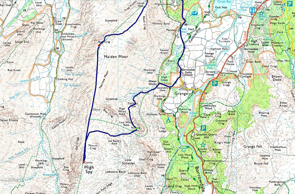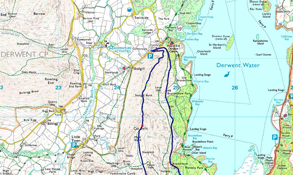 Gutherscale - Skelgill Bank - Cat Bells - Hause Gate - Maiden Moor - Narrow Moor - High Spy - Nitting Haws - Drove Path - Cockly How - Swanesty How - Manesty - Gutherscale |