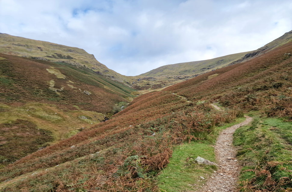 The view over Hause Gap and Grisedale Hause towards Seat Sandal. |