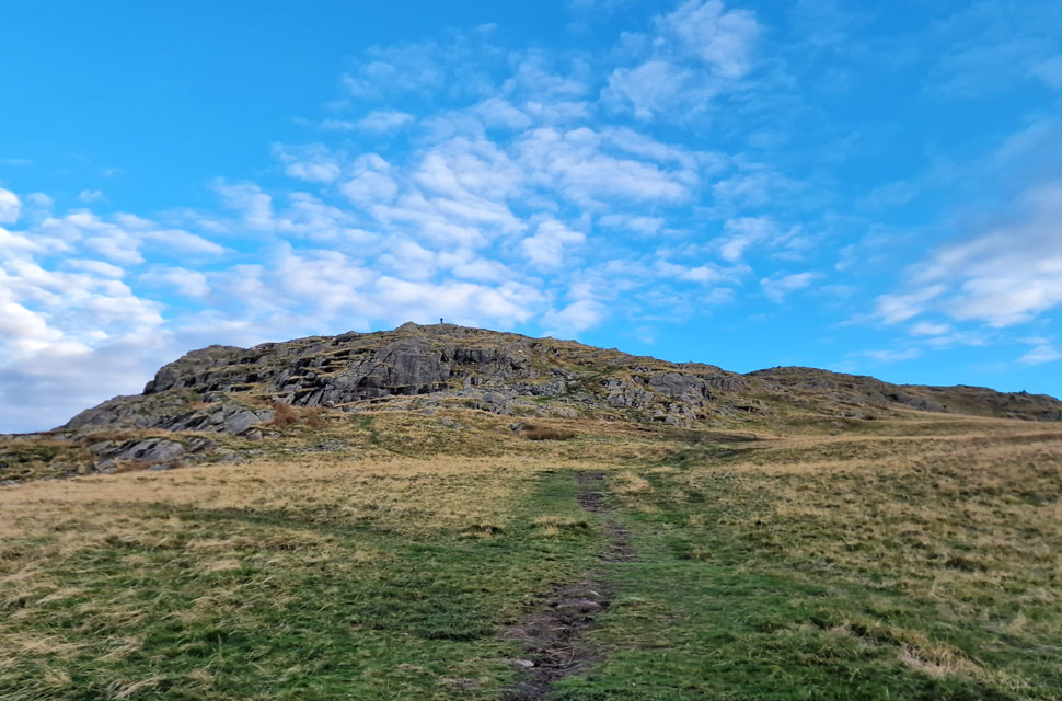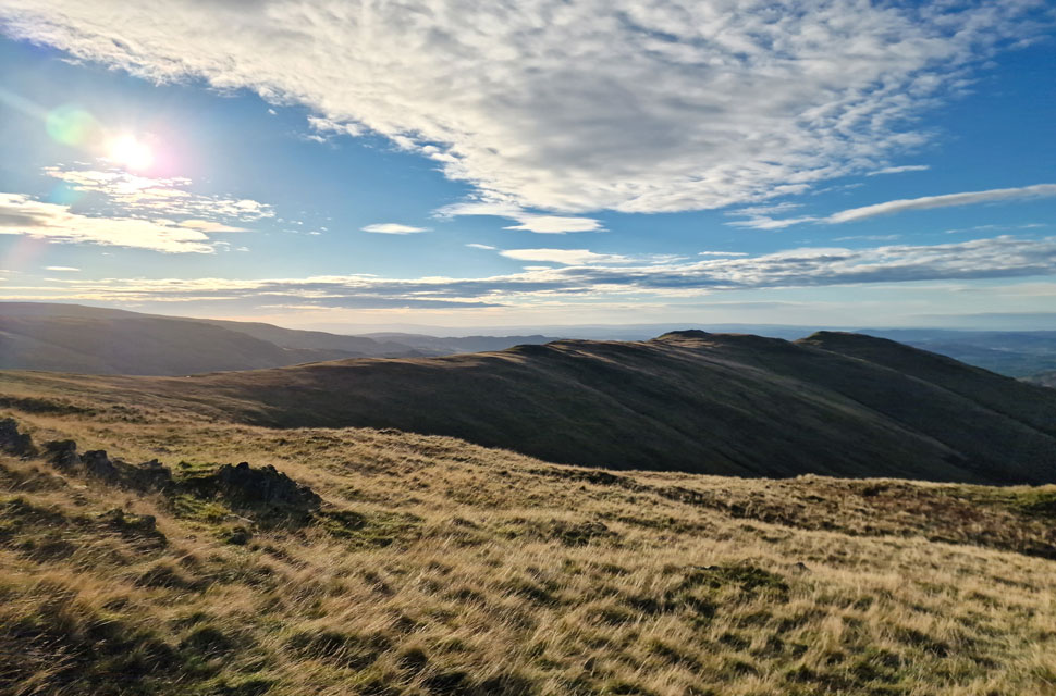 Looking back down the grassy spur towards the direction of Stone Arthur. |