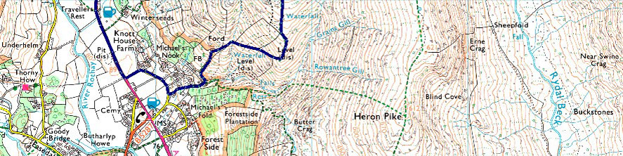 A591 - Greenhead Gill - Stone Arthur - Great Rigg - Fairfield - Grisedale Hause - Hause Gap - Hause Moss - Tongue Gill - A591 |