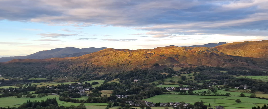 Hart Crag and Dove Crag seen over the Rydal Valley. |