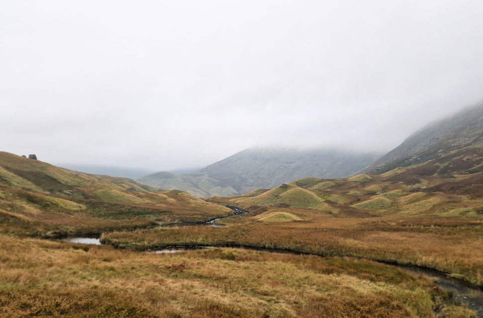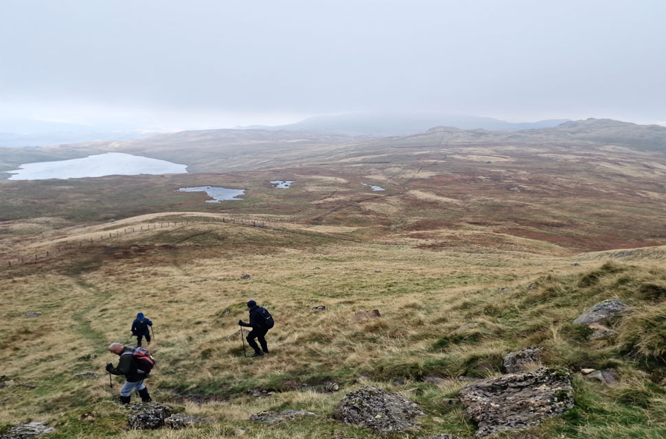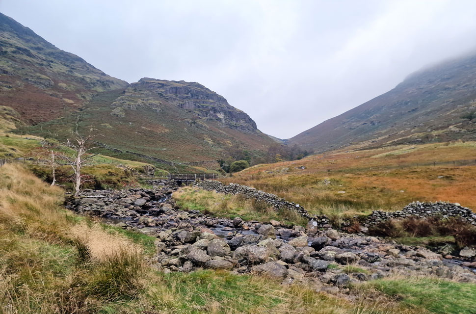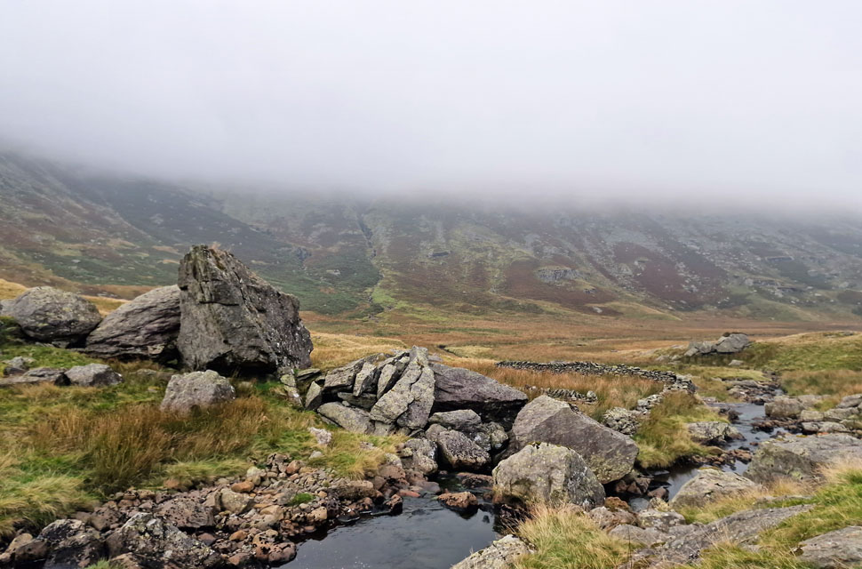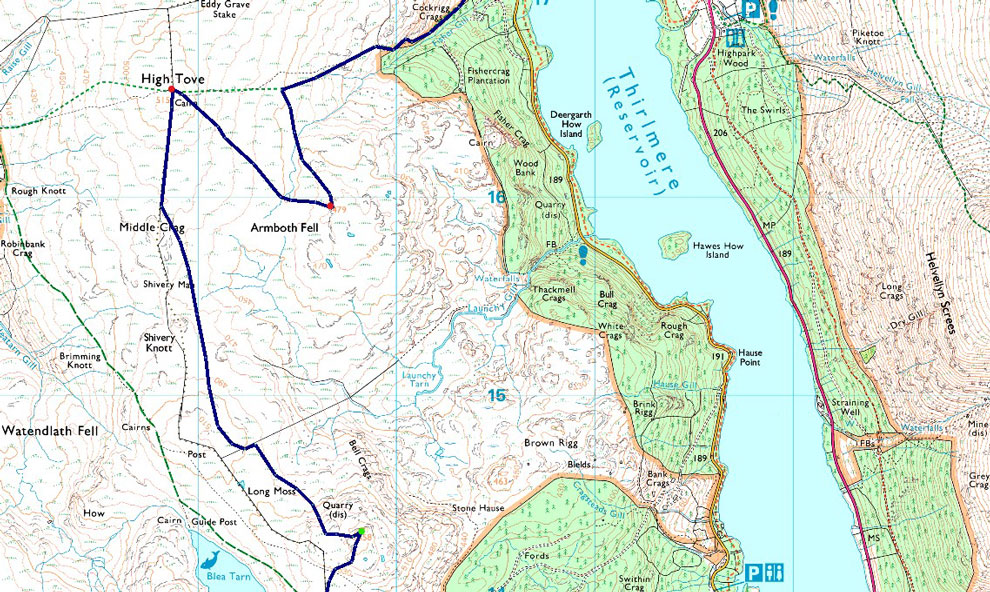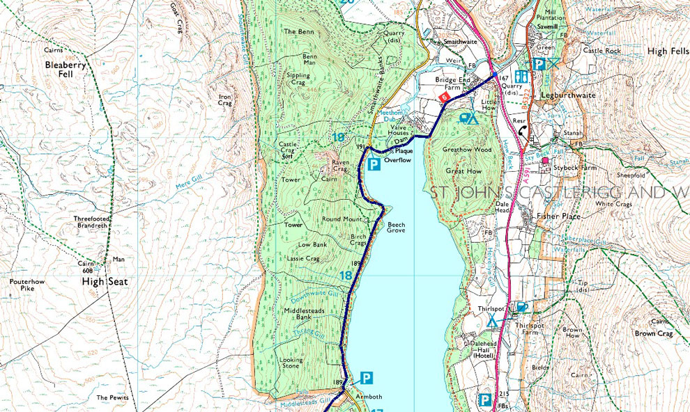 We reached the tarmac with heavy, sodden boots, but at least we could lose layers or, in my case, zip down because, as usual, I'm too stubborn to stop. We still had a two-mile walk back to Turnip Corner, and we enjoyed the views while pulling into single file to allow the odd car to pass, always thanked by the drivers. The road was popular with cyclists too, which prompted me to wonder why I'd never circuited Thirlmere on my mountain bike, probably because I prefer to walk. Raven Crag came into view, which on any given day could be mistaken for a mini version of El Captan—its cliffs vertical and unforgiving. We joined the dam at the same time as a trio of walkers, two guys and a woman who we tailed until they stopped to take photographs of Thirlmere before being passed by two couples walking their dogs. The A591 was close now, the traffic travelling along it breaking the silence instantly bringing us all to reality as we stood on the edge of the white lines while waiting for a break in the traffic. |