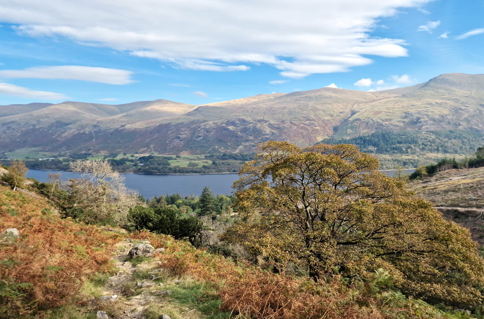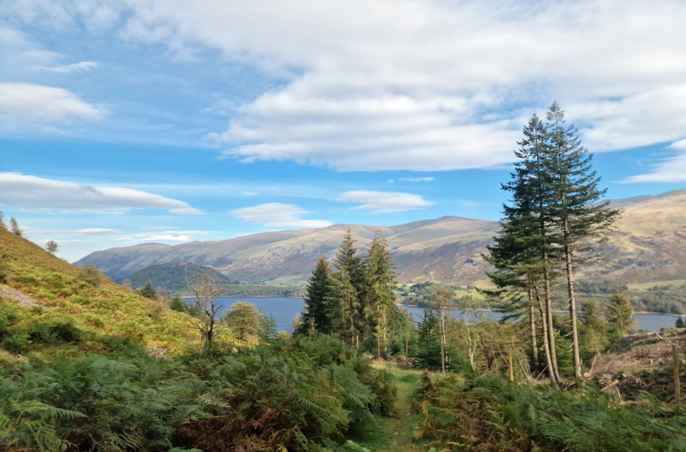 David had offered to carry my pack, and although I was highly thankful, I think the pack was actually helping to keep my back ridged, which helped heaps with the final stony descent. The overdue sunshine was warm and views were clear, which could have easily been mistaken for a typical summers day, more so as I was beginning to overheat after doubling up on layers ready for the -5°C wind chills that never came. David stopped to remove his gaitors, the only gear I know he loathes wearing. We passed the impressive static boulders, stopping to admire the largest defying gravity on the moderate slope. Through the trees we spotted cars parked at Armboth car park, most of which had canoes or kayaks fastened to their roofs. We all agreed we were sure sailing, or for that matter, swimming, was forbidden at Thirlmere.