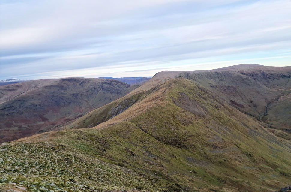 | We left Thornthwaite Crag for a descent into Trout Beck via Scott's Rake from where we took in the views towards the south facing ridge that divides Woundale from Trout Beck. It's a ridge David has been meaning to walk and while we had excellent views we came up with a route so watch this space for early 2025. |