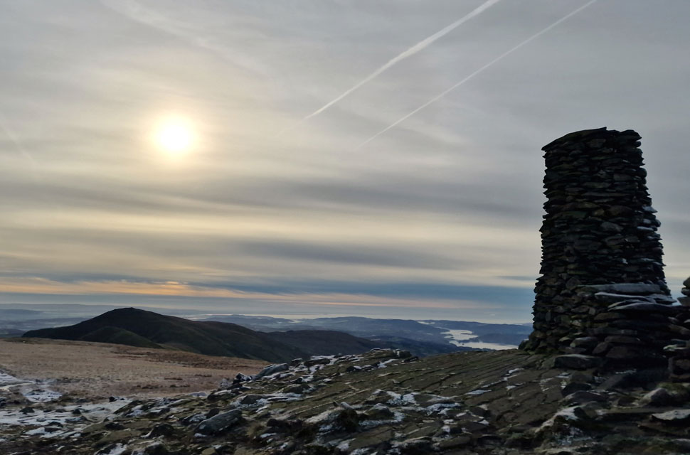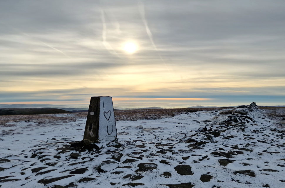 | We followed the wall over frozen ground until the summit trig point came into view where we spotted the work of a previous walker who, might share the same bond of High Street as I do. Knowing that we'd only seen the one fell runner all morning I guessed whoever had done this, had done it yesterday. |