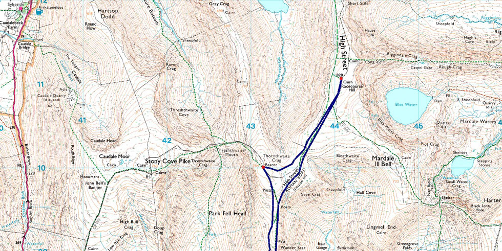 | It was agreed we would leave the path, cross the top of Gavel Crag bound for Hall Cove before breaking away northwards High Street bound. |