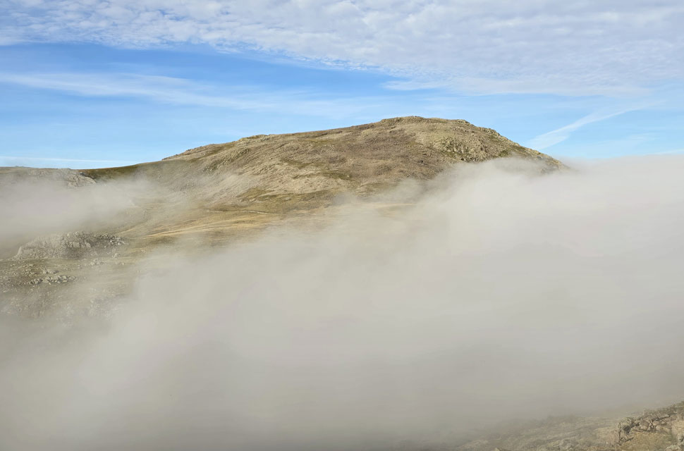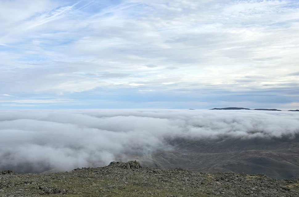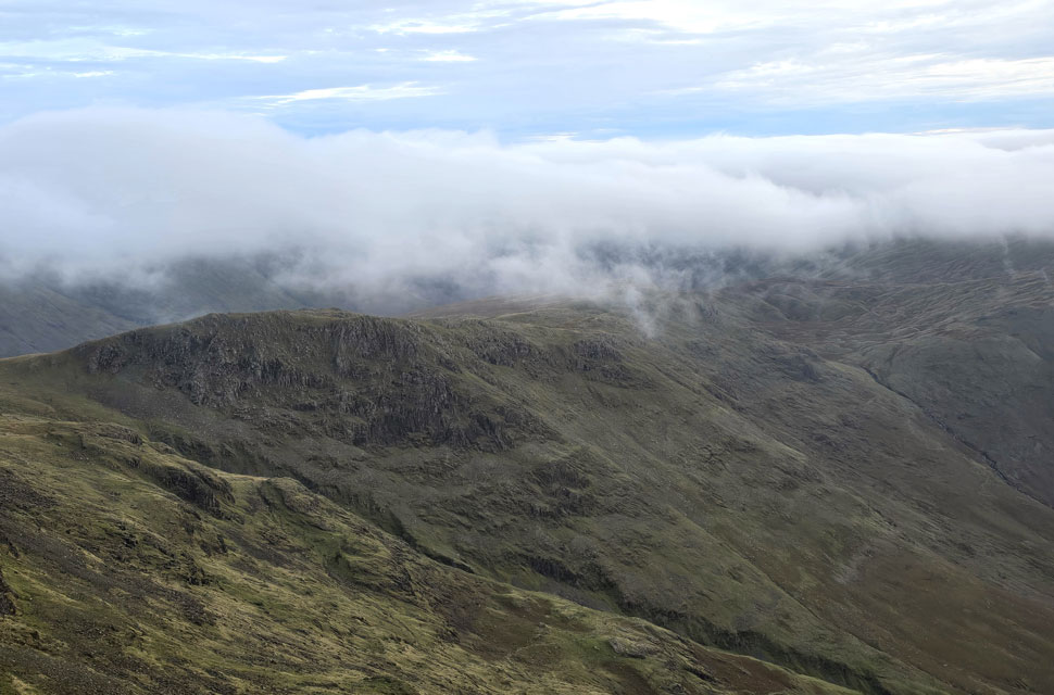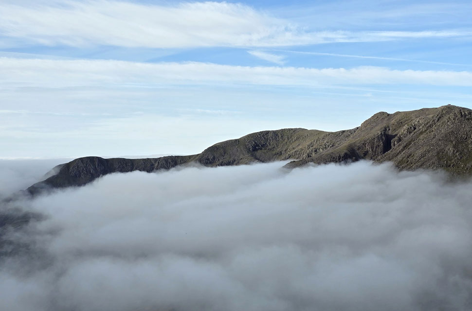 | Looking over a wall of cloud towards Lower Man and Helvellyn. |