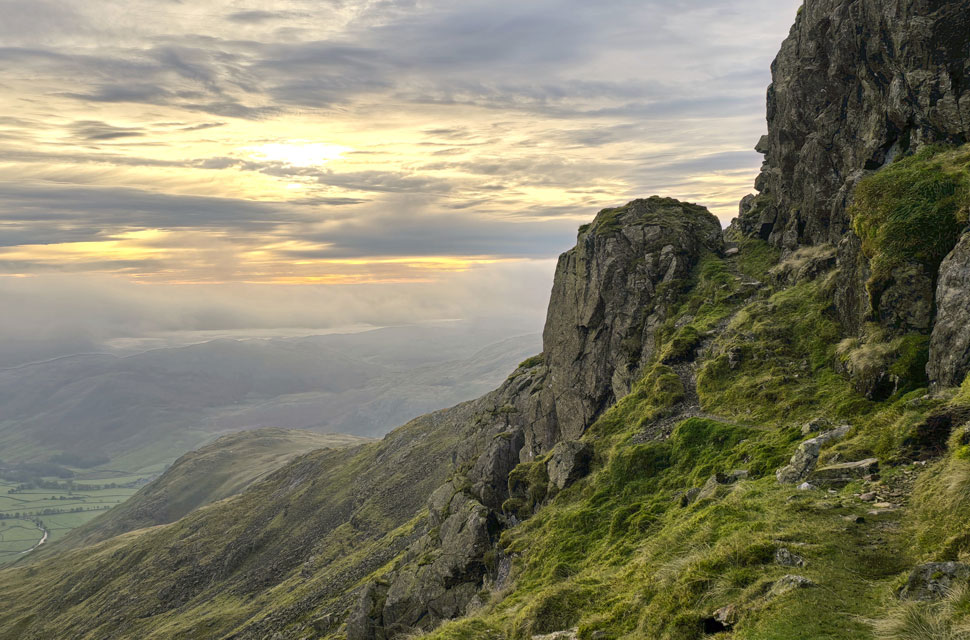| We joined The Climbers Traverse in great spirits whilst watching the cloud inversion unfold which was now spreading north east over the Langstrath valley and beyond. |