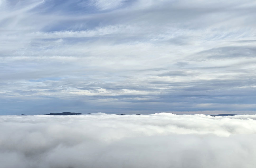 | It's generally assumed that cloud inversions are caused when a layer of warm air traps cooler air and moisture near the ground, leading to the formation of clouds or fog in valleys. As we had decent visibility from the off we assumed that we'd missed out on the inversion unbeknown to us that it was approaching from the west thick, and fast. |