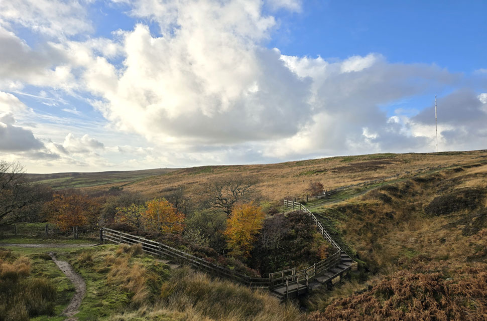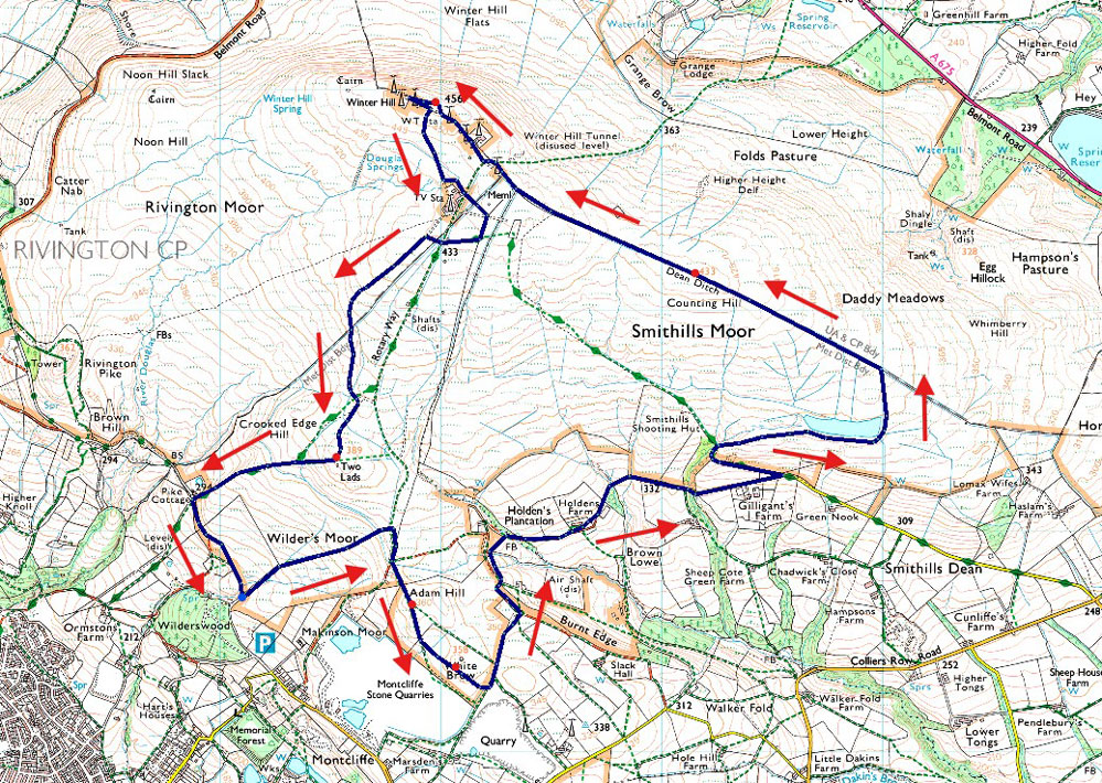 Saturday forecast was a washout and Sundays wasn't looking too good either so I had resigned myself to a weekend away from the fells getting the shock of my life this morning when I checked the webcams to find blue skies above clear summits, admittedly the last time I had checked was Friday evening and of course, the forecast had changed, oh well, not to worry. I guess I'm really lucky to have Winter Hill just eight miles from home. I'd planned to visit Winter Hill from Wilderswood walking a simple out and back but during this mornings dog walk I thought about extending my route to include Counting Hill and if I was going to do that, I might as well throw in Adam Hill and White Brow too.