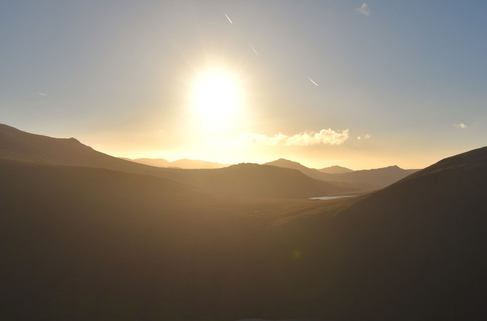 | First light over Bowderdale, Middle Fell and Seatallan. |