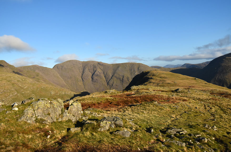 | Views over Yewbarrow towards Lingmell and the Scafells. |