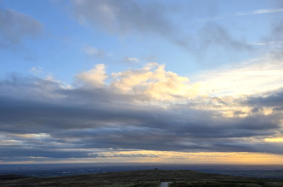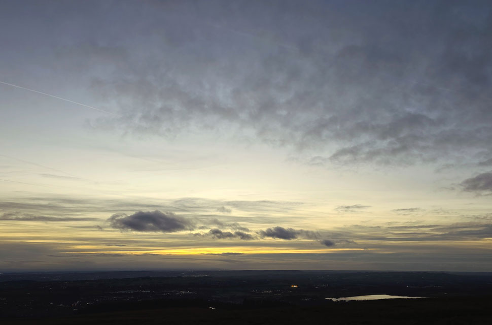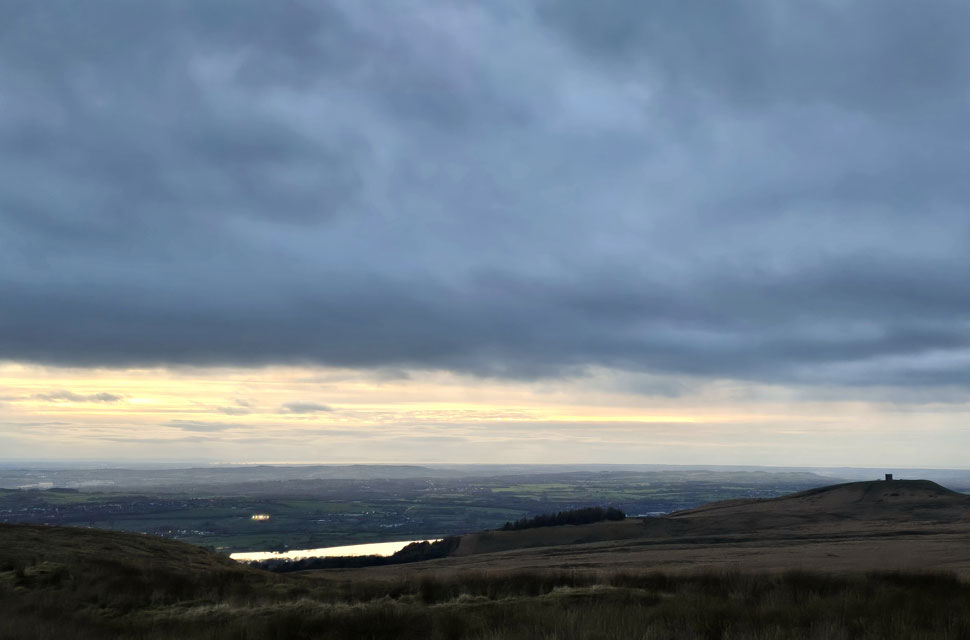 By the time I got back to the parking spaces the shower had passed and through the trees light shone through a horizontal gap in the cloud narrowing with each second passed. It had only just gone 4pm and again it felt much later. Folk began returning to their cars mostly from the direction of Rivington Pike with the exception of one E-mountain biker who passed me on route towards Rotary Way his rear flashing light faded into the distance once I lost sight of him. |