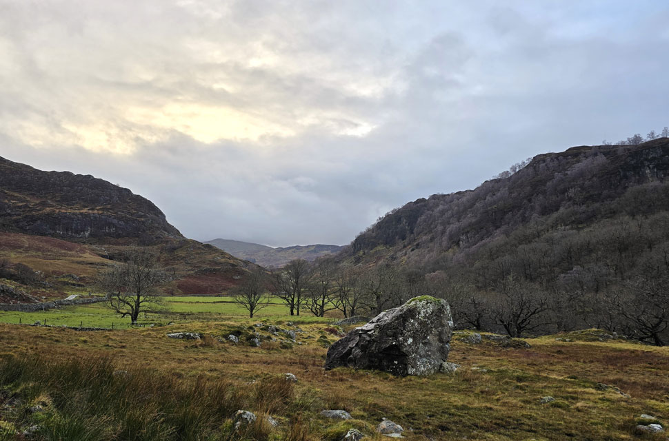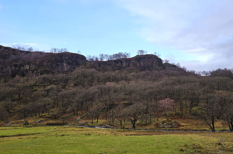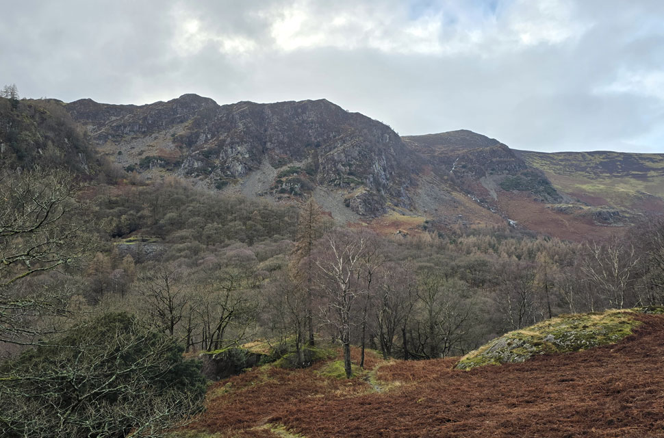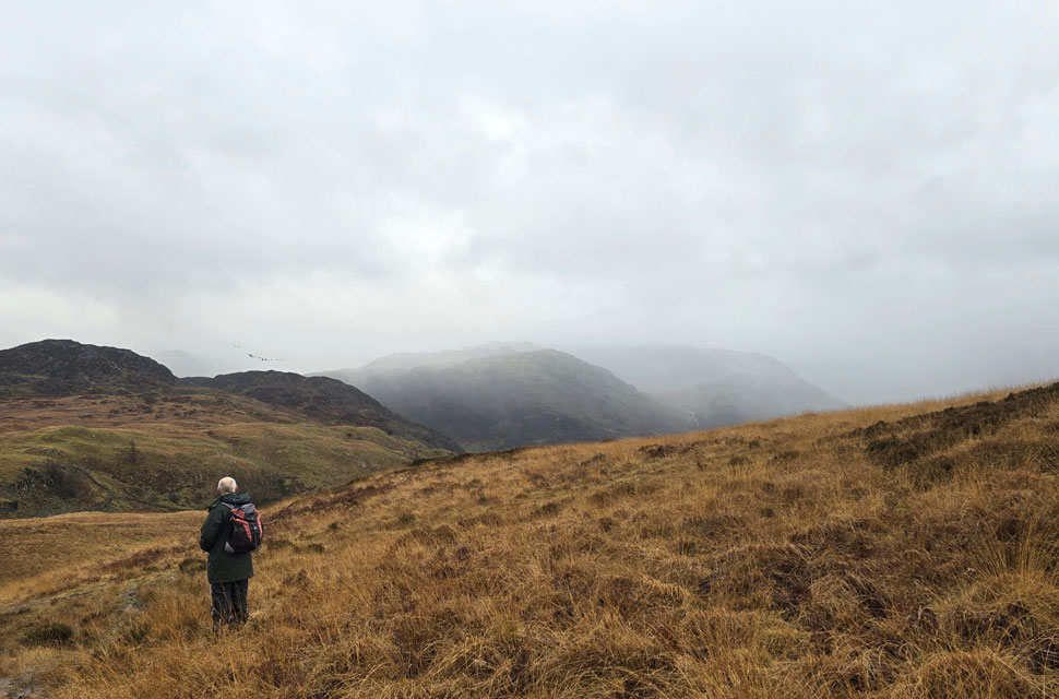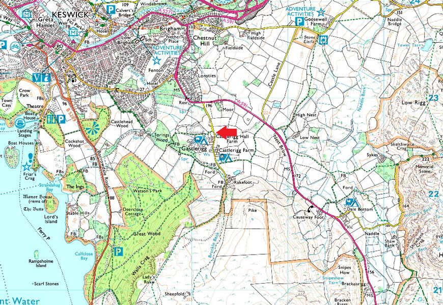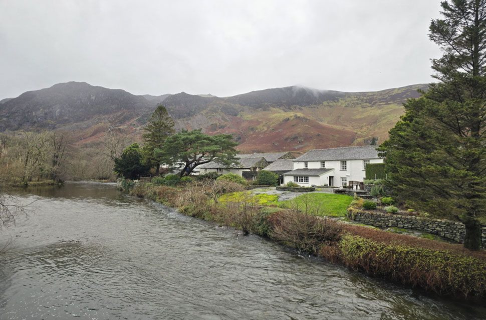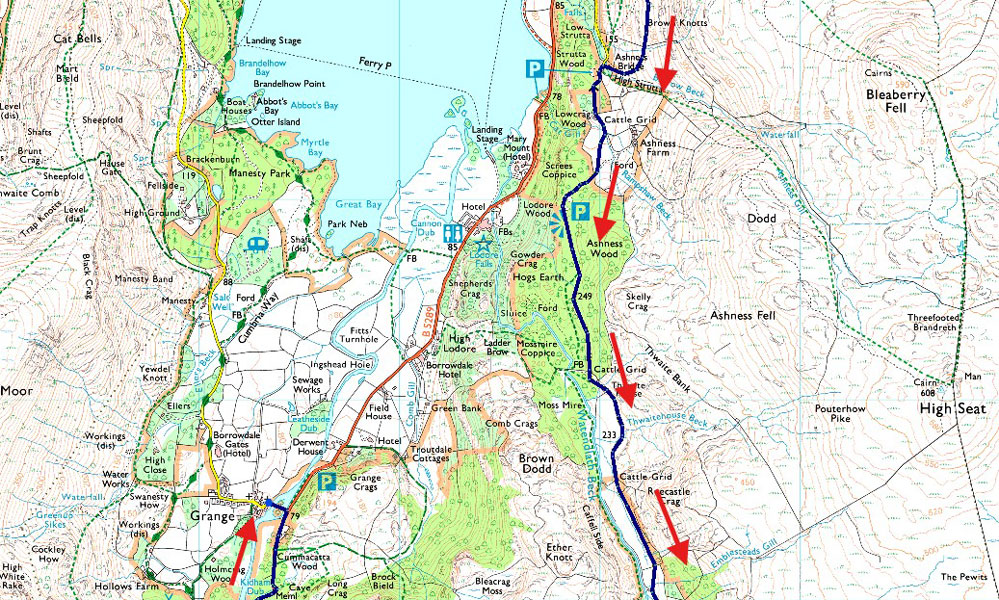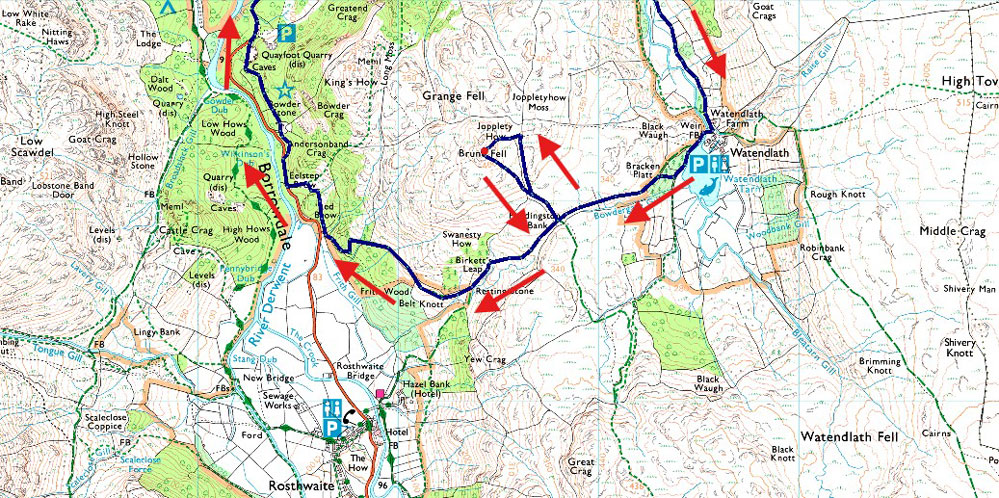 Despite a forecast of persistent rain for the duration David and I put together a low level walk using two cars from Rakefoot just outside Keswick to Grange in Borrowdale taking in Walla Crag and Grange Fell along the way. The original route would have extended to Castle Crag via New Bridge and The Cumbrian Way but after one look how full Derwent Water looked we changed the route just in case the River Derwent had burst its banks outside Rosthwaite and New Bridge, a decision that we later learned needn't have been made but,,, thinking ahead and all that. I met David outside Grange Methodist Church at about 6:55am, swapped my gear into Davids car (remembering my jacket this time) before heading back to Keswick and Rakefoot thereafter. It was still pitch black and an hour away from sunrise when we parked up, half way up the lane not far from Heights Hotel/Guest House we kitted up in misty drizzle into full waterproofs.