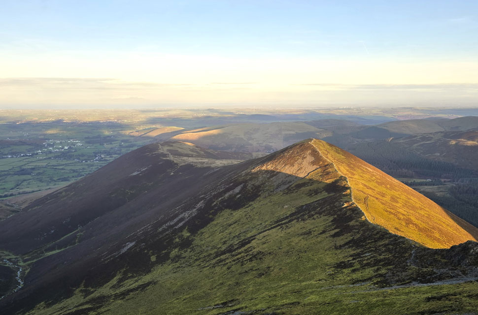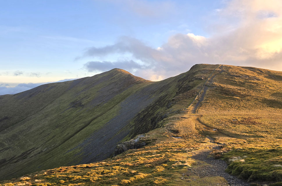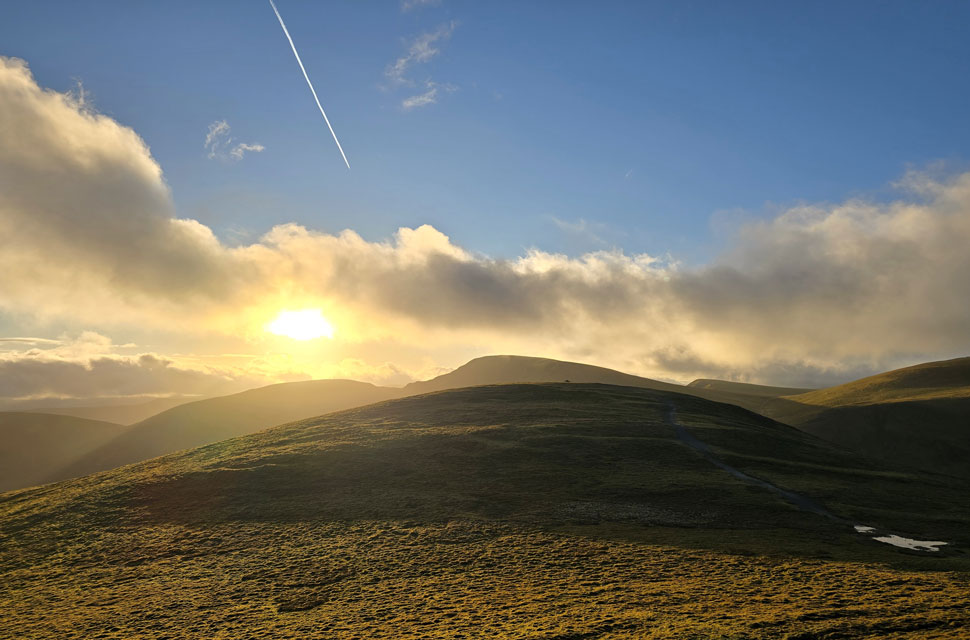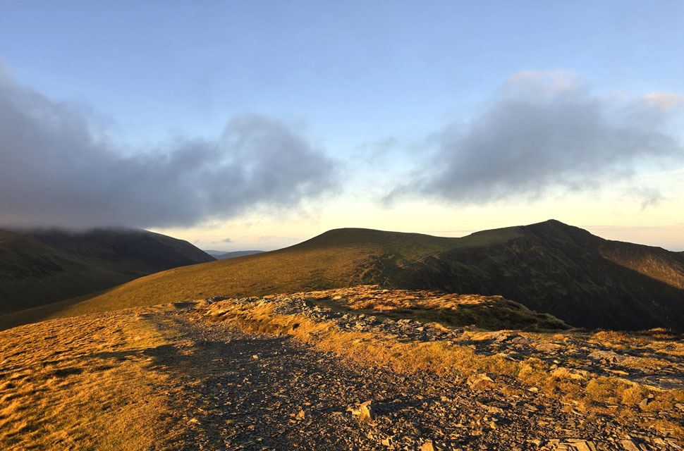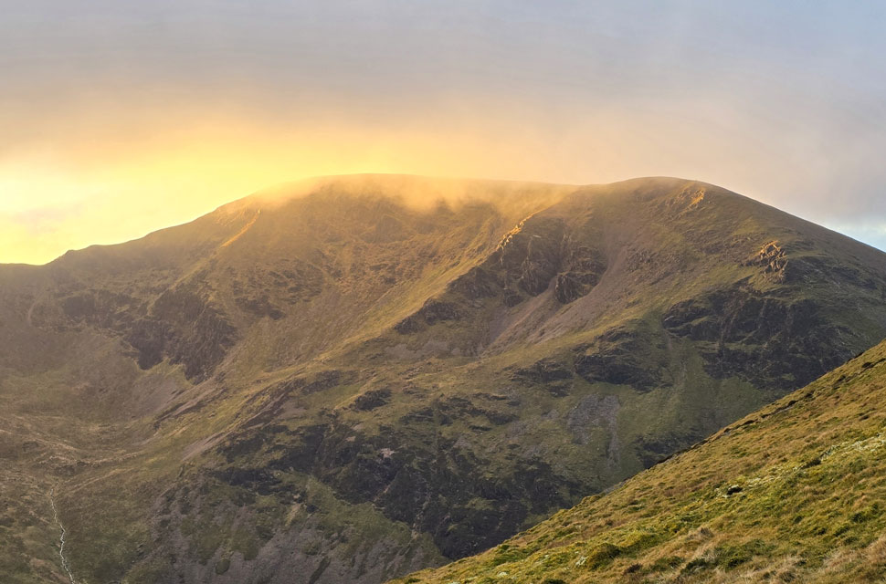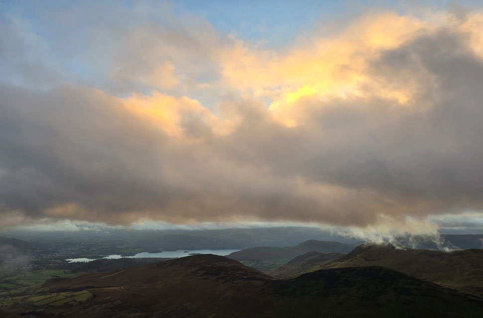| When I reached the top of Sleet How, I saw that the dawn light showed more clouds than the forecast from three hours earlier. I checked the Met Office App and, sure enough, the forecast had changed again. At first, I felt frustrated, but after a few minutes I let it go, shrugged, and reminded myself how lucky I was just to be here. |