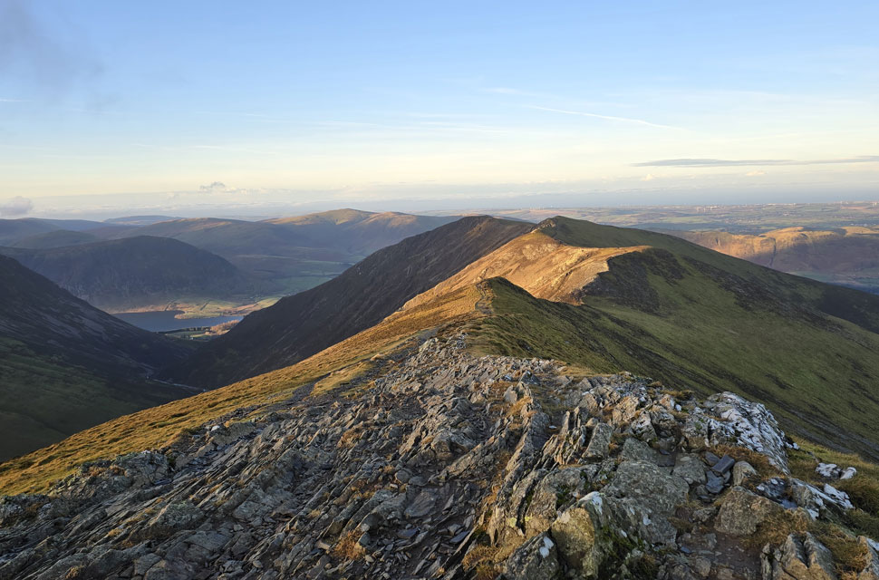 | With Views of Scar Crags, Causey Pike, Outerside, Stile End and Barrow. That's Sail Pass below where I'll hook a left and begin my descent into Coledale. |