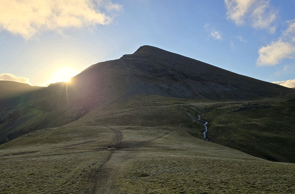 The dreary December weather seemed never-ending, with a month's worth of rain falling in Cumbria in a little over a week. The rain continued day after day and truth be told I was itching for a proper walk, the frustration continued until midweek when I read the mountain forecast both Weatherline and MWIS contradicting each other yet the Met Office forecast at least stayed pretty much the same with intermittent sunshine, the brighter forecast being north of the county which worked well as an ascent of Grisedale Pike had been on the cards for a few weeks, trouble was I couldn't make my mind up on which route to take so I told myself I'd make it up as I went along. The Met Office forecast had changed again for the worse overnight, but I was determined to go ahead even if it meant walking in cloud. I just wanted to get boots onto the fell. I left home under starry skies and arrived at the car park above Braithwaite village around 6:45am, from where I could still see the odd star through broken cloud.