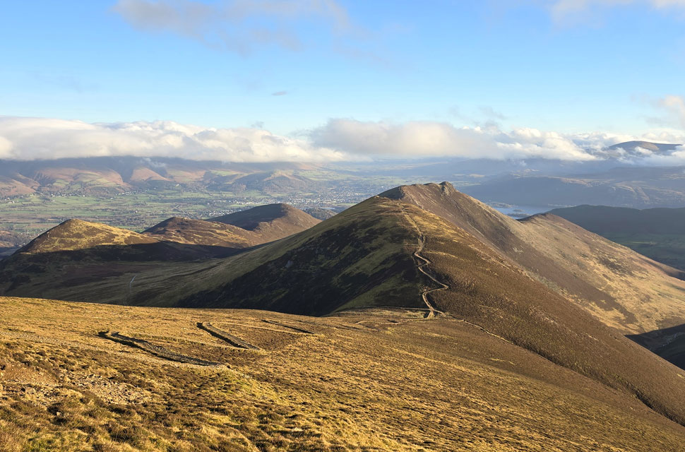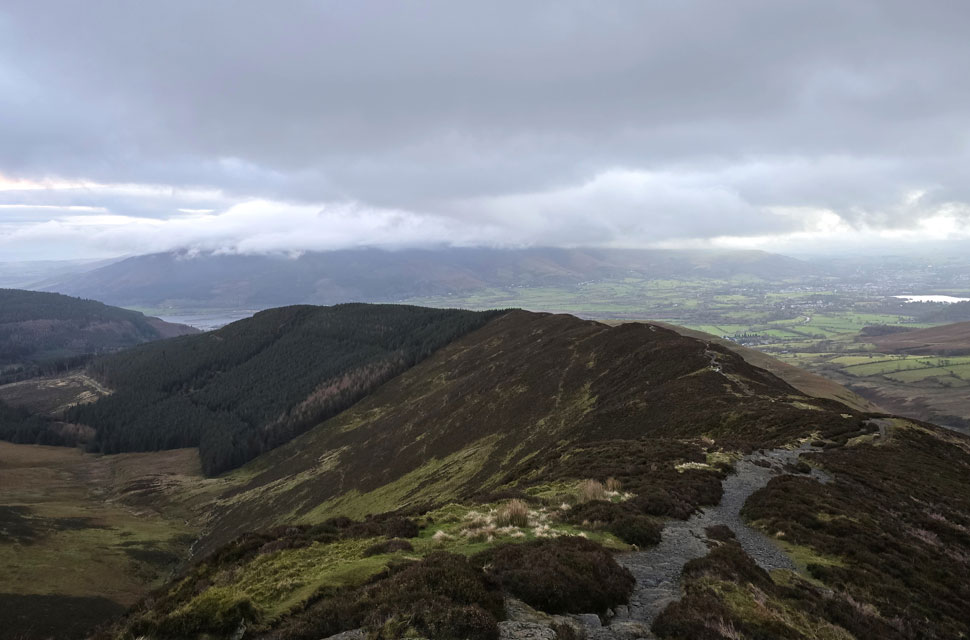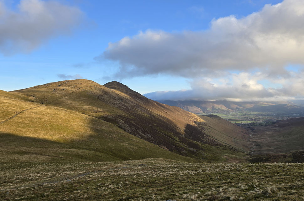 | Looking back on Sleet How and a distant cloud topped Skiddaw and Blencathra 8:22am |