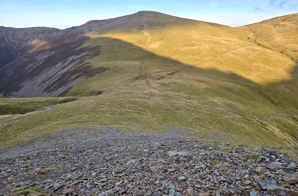 | Descending Sand Hill with views over Coledale Hause towards Eel Crag (Crag Hill) and Sail. |