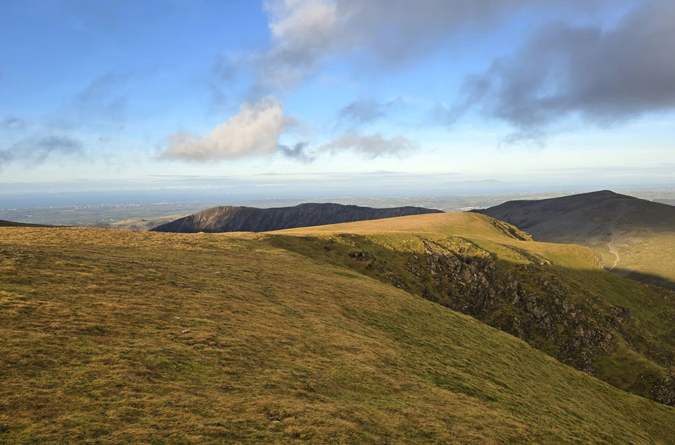| Whiteside seen beyond Gasgale Crags from Hopegill Head summit. |