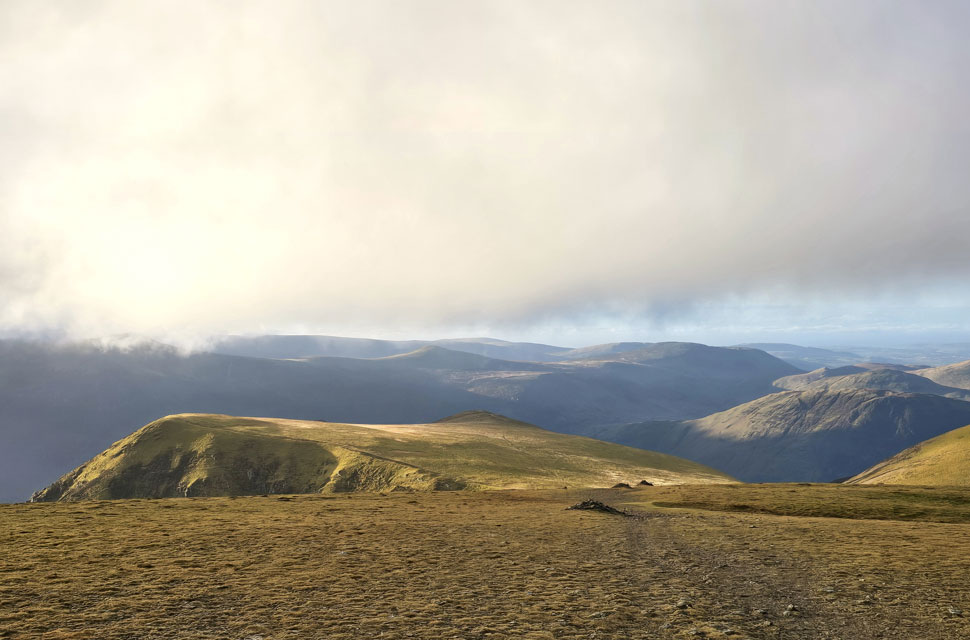 | The Eastern fells from Clough Head through to Nab Scar are below a sea of cloud that hasn't broke all morning. |