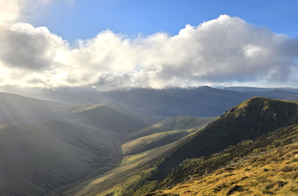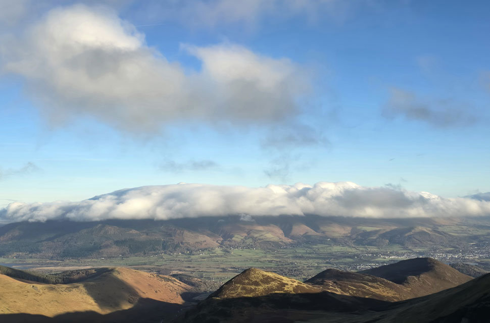 | A distant cloud topped Skiddaw and Blencathra from Sail summit. |