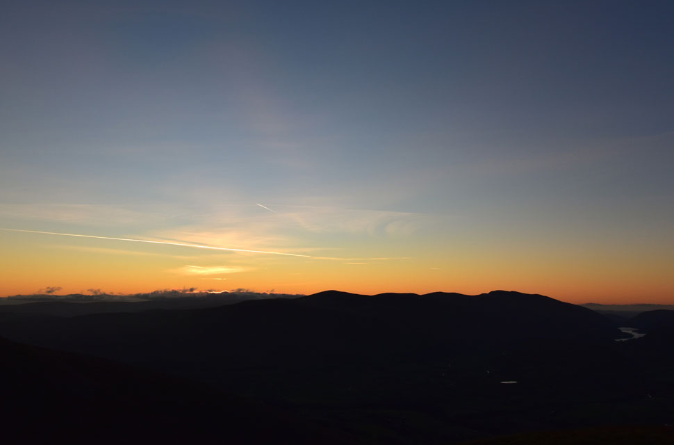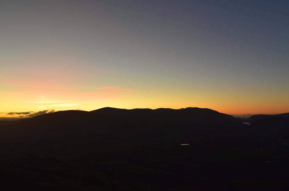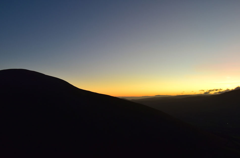 Along the Cumbria Way spotting more pairs of head torches on the Blease Fell zigzags. I had a spectacular view of the predawn horizon, which changed from deep red to mellow orange, capped off with a bright yellow. It felt good to be alive despite the task of ascending Lonscale Fell ahead of me. |